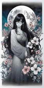 水墨画風の女性