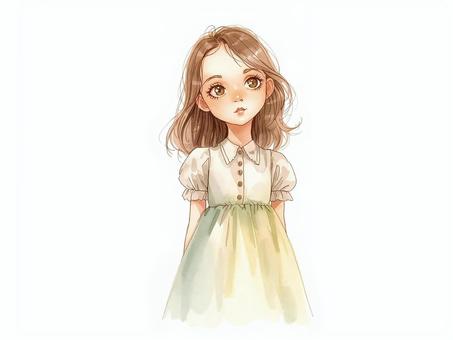 白背景に水彩画風の美しい少女