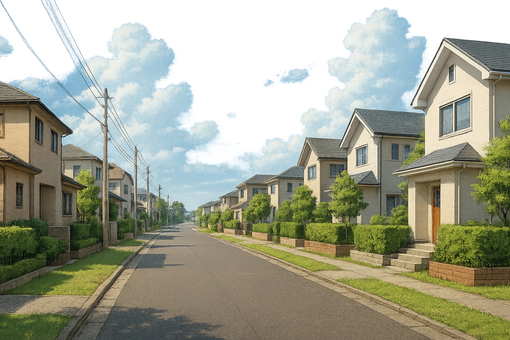 住宅地 水彩 風景イラスト