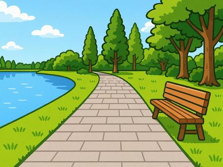 湖のある公園の散歩道