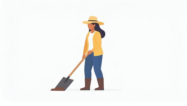 畑仕事をする人/カラー