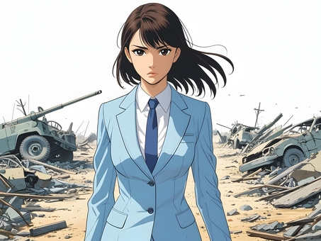 戦場を歩く若いビジネスウーマン