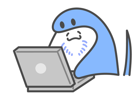 パソコン操作する匿名鯉のぼり(青)