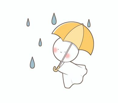 雨の日 黄色い傘の女の子と赤い傘のヌッコ