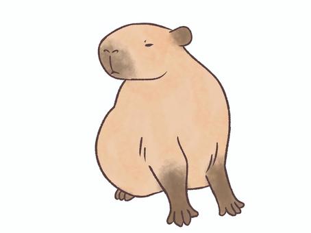 座るカピバラ