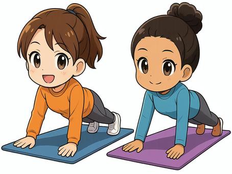 ペアでトレーニングする若い女性2人
