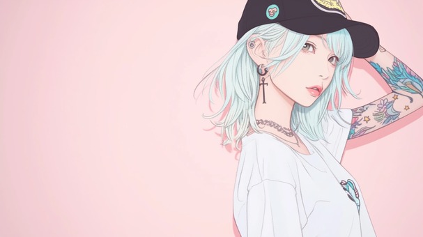 水色の髪のタトゥーの入った女の子