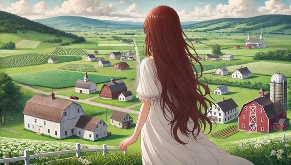 丘から町を見下ろす女性