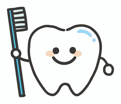 歯ブラシ(ピンク)を持つ歯のキャラクター