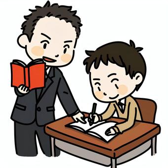 教師と勉強をする男子生徒のイラスト