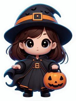 ハロウィンコスプレ女性とかぼちゃの入れ物