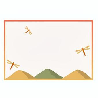お盆(菊の花が入った手桶とホオズキのフレーム)