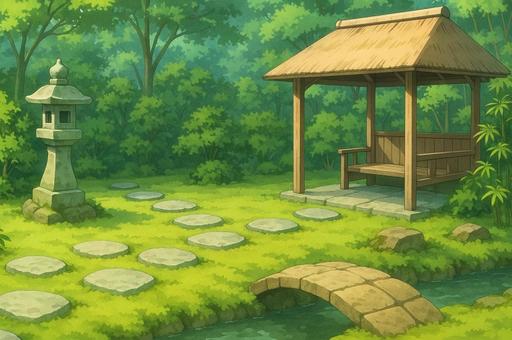 落ち着いた佇まいの家と緑豊かな庭園_背景