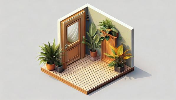 アイソメトリック 犬が待っている玄関