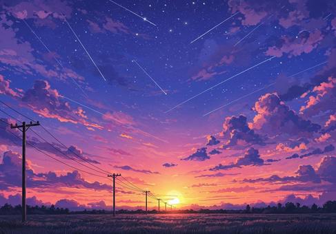 煌めく夕陽に染まる幻想的な茜雲_背景画