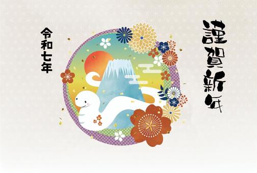 年賀状2025 巳富士山花 横