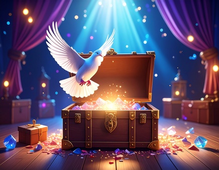 光と宝石に舞う白い鳩