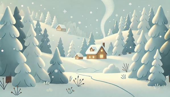 雪が降り始めた山の背景イラスト