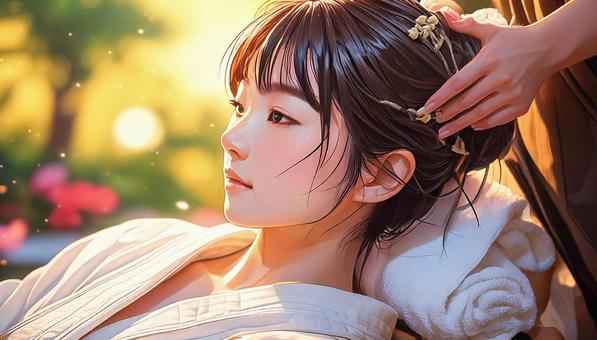 ヘッドスパを受ける女性