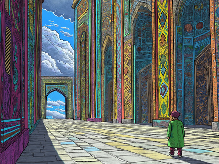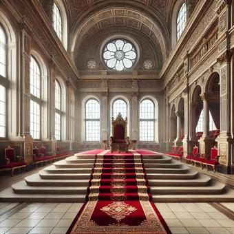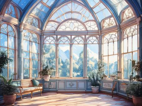 青空が見晴らせる白亜の宮殿の広間_背景画