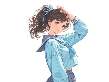 髪をまとめるセーラー服の女子高生
