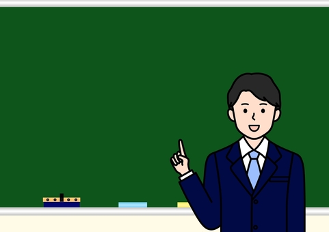 黒板と指差しポーズの先生・教師・講師男性