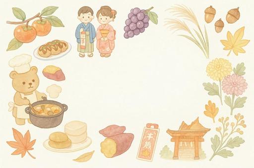 秋のフレーム(ドングリ・紅葉・栗・銀杏)