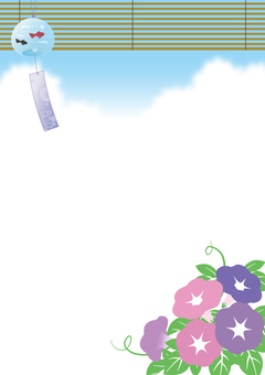 入道雲と金魚柄の風鈴とすだれのハガキ