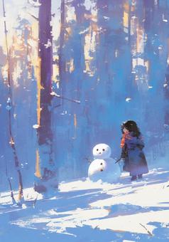 雪だるまと女の子