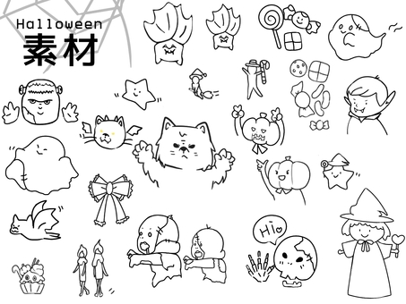 ハロウィーン素材セットイラスト 白黒