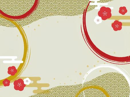 和柄で赤輪と花のフレーム年賀状素材金屏風