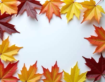 オレンジの紅葉と銀杏の斜めな水彩フレーム