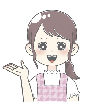 片手を広げる エプロンの女性