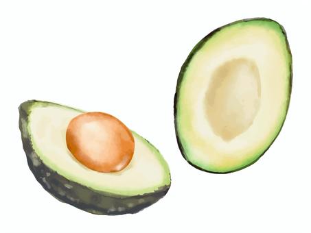 水彩画風半分に切ったアボカドのイラスト