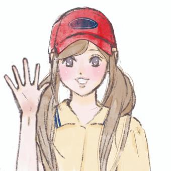 キャップをかぶった笑顔の女の子