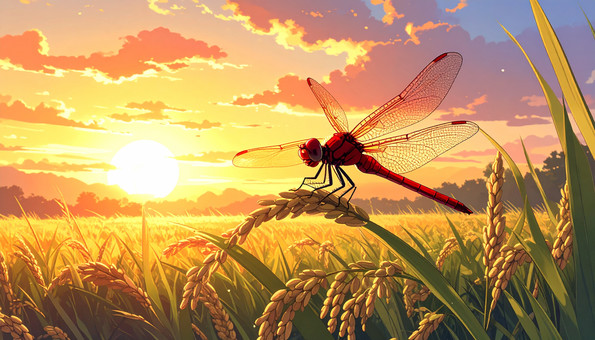 赤トンボと稲穂