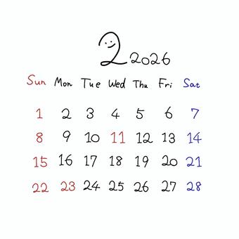 2026年2月カレンダー日曜始まり