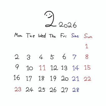 2026年2月カレンダー月曜始まり