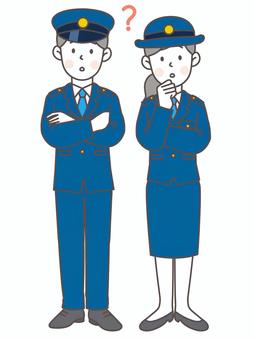 悩んでいる警察官(男女)_全身