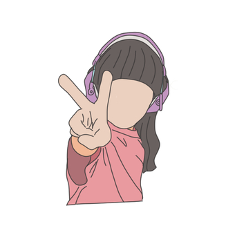 イヤマフをつけてピースする女の子