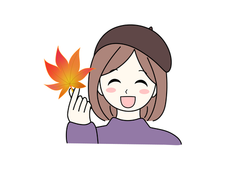 もみじを持って笑う女の子