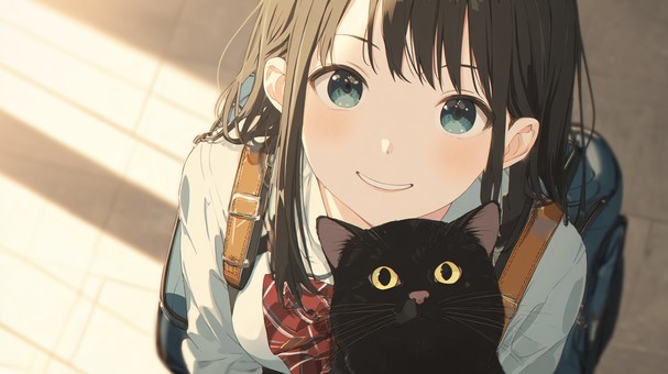 黒猫を抱く制服少女