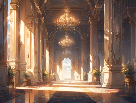書棚やソファが彩る光射す壮麗な書斎_背景