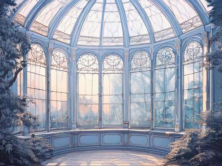 アーチ型の柱に蔦が絡む格調高い回廊_背景