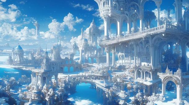 ファンタジーやゲーム風の水晶の宮殿の背景