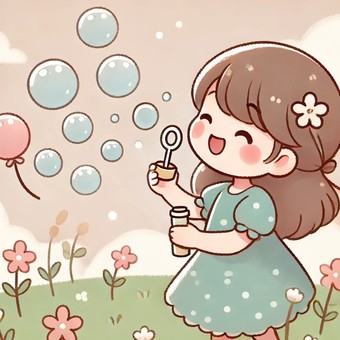 しゃぼん玉を飛ばす女性
