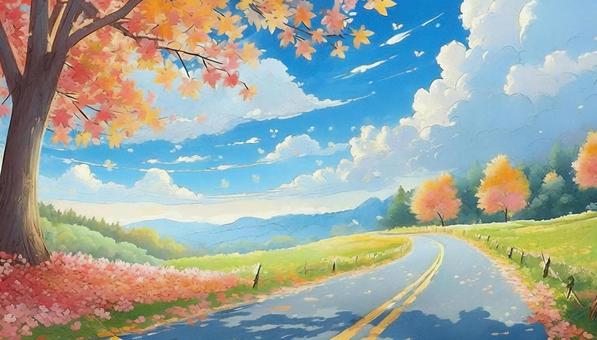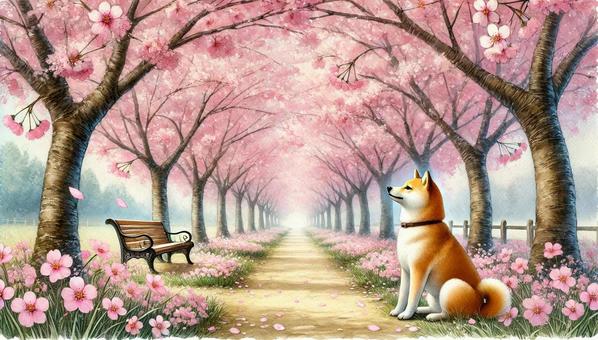 桜並木を歩くカップルの後ろ姿(アニメ風2
