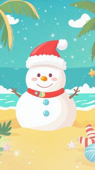 南国ビーチで過ごすサンタ帽の雪だるま
