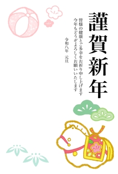 獅子舞に扮したヘビの巳年用縦向き年賀状