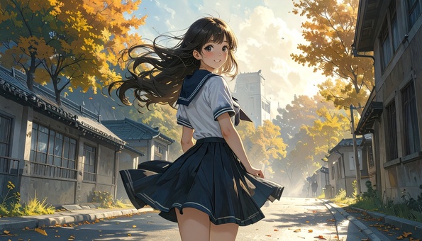 振り向く女子高生
